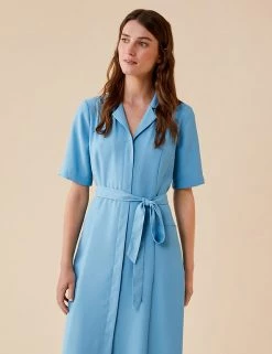 Product Style: Shirt dress, Product Length: Midi, Fit: Regular fit, Fastening: Tie fastening, Unlined, Neck Shape: Collared neck, Sleeve length: Short sleeve