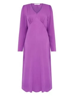 This beautiful tea dress from Finery London has a minimal design with maximum impact. It’s cut to a regular fit from a drapey material that gathers gently at the bust and shoulders. The v-neckline and long sleeves enhance the flattering silhouette. This dress sits at a sophisticated midi length.