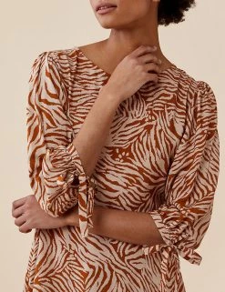 With its timeless zebra print pattern, this Finery London tea dress is made for daily wear. The regular fit and round neck add to the classic look. Three-quarter-length tie sleeves enhance the feminine look of this midi style, complete with a floaty hemline.