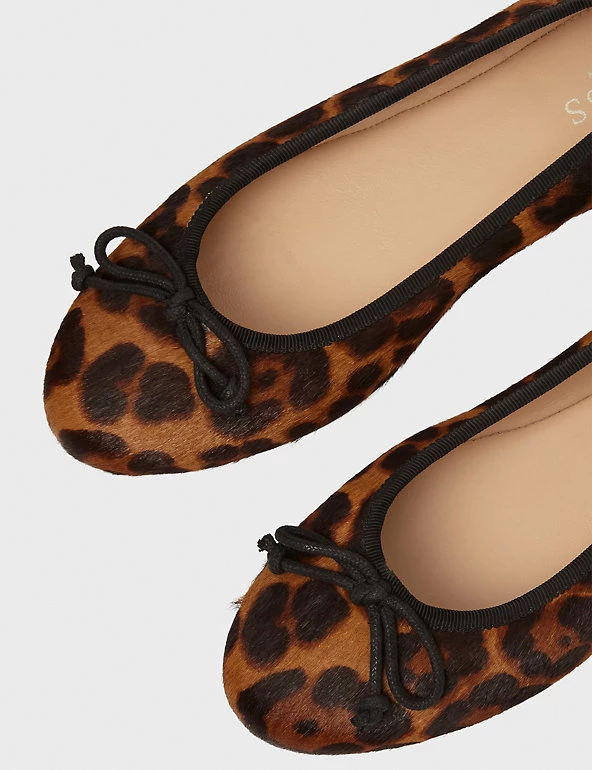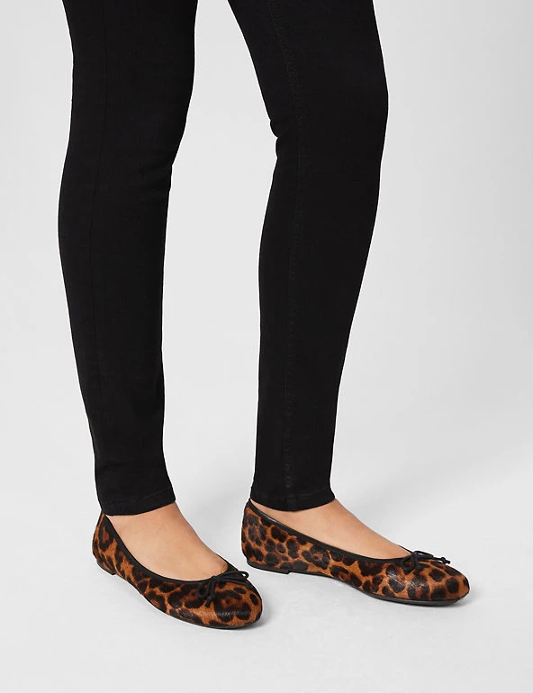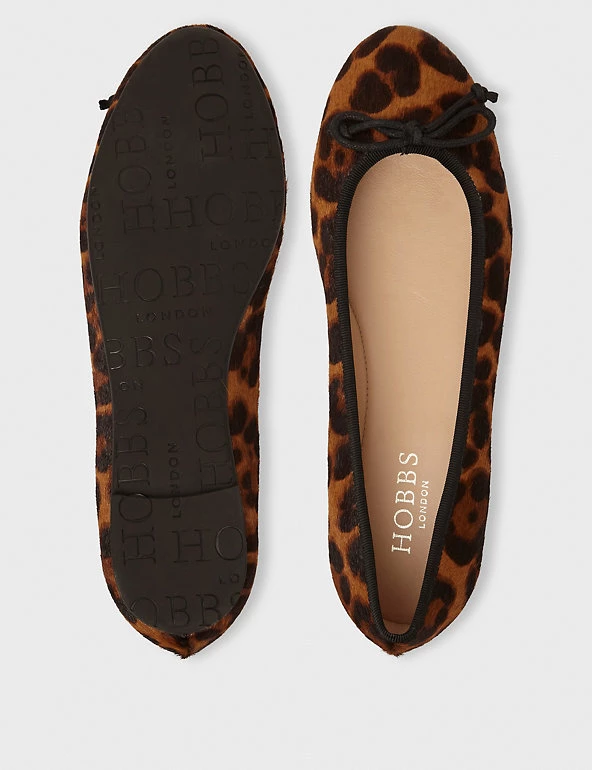 With their bold animal print, these Hobbs ballet pumps add a striking finishing touch to any outfit. They’re made in a comfy standard fit, in a slip-on style with an easy flat heel. A grosgrain ribbon trim and a centre bow add feminine detailing.