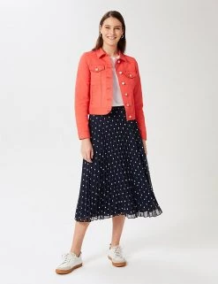 Add a casual note to summery looks with this cropped cotton-rich denim jacket by Hobbs. It’s cut to a regular fit and features traditional details such as seam detailing and metallic rivets. You’ll also spot classic chest pockets and slip pockets to the side. A hint of stretch in the fabric ensures it’s easy to move in. This brand is proud to invest in making cotton production more sustainable.