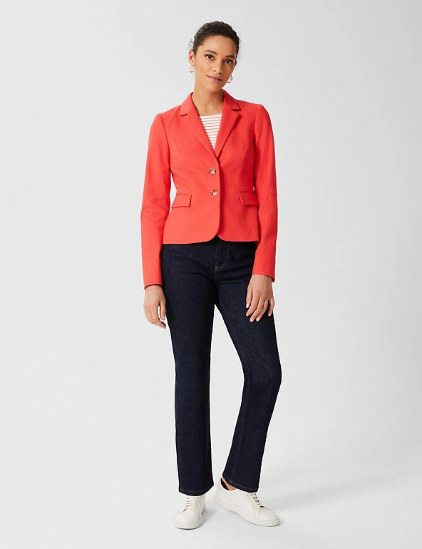 This jacket from Hobbs is made from a textured cotton-rich fabric that’s perfect for the warmer months. It’s cut to a regular fit, with shaping at the bust and waist for a flattering silhouette. Peaked lapels, buttoned cuffs and flap pockets deliver a tailored look.