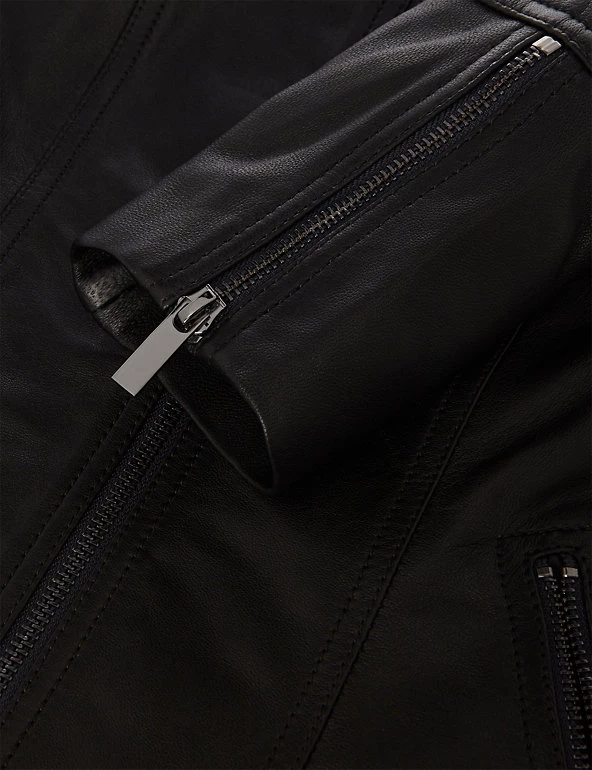 With its bold styling and butter-soft leather fabric, this biker jacket from Hobbs is an instant wardrobe classic. It’s made in a flattering regular fit, with zipper fastenings at the front and sleeves. The collarless neckline features poppers for extra detailing. Zipped pockets at the waist keep your essentials secure.