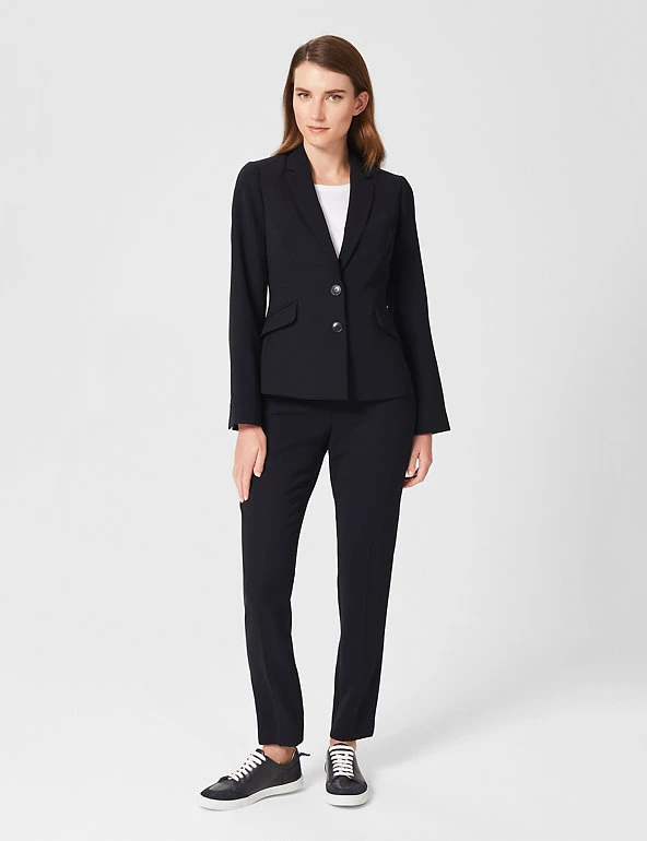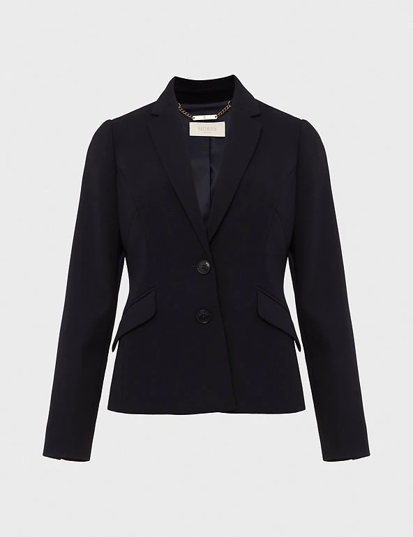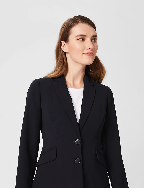 With its smart tailored cut and versatile style, this blazer from Hobbs is a workwear essential. It’s cut to a regular fit that’s perfect for everyday wear, with classic lapels and double button fastenings. This style is finished with two flap pockets. Made with recycled polyester lining.