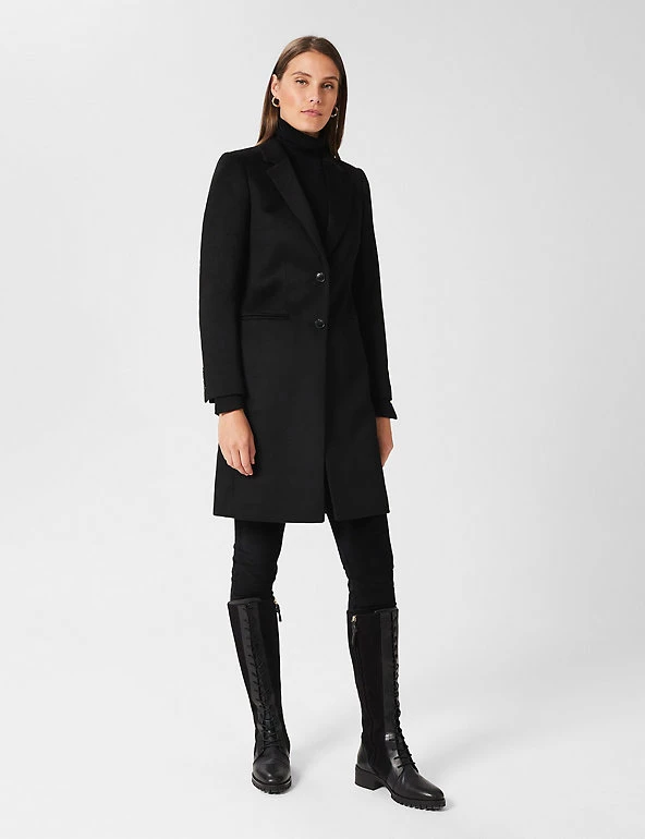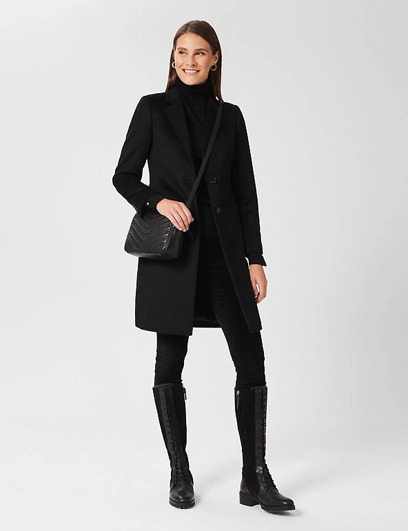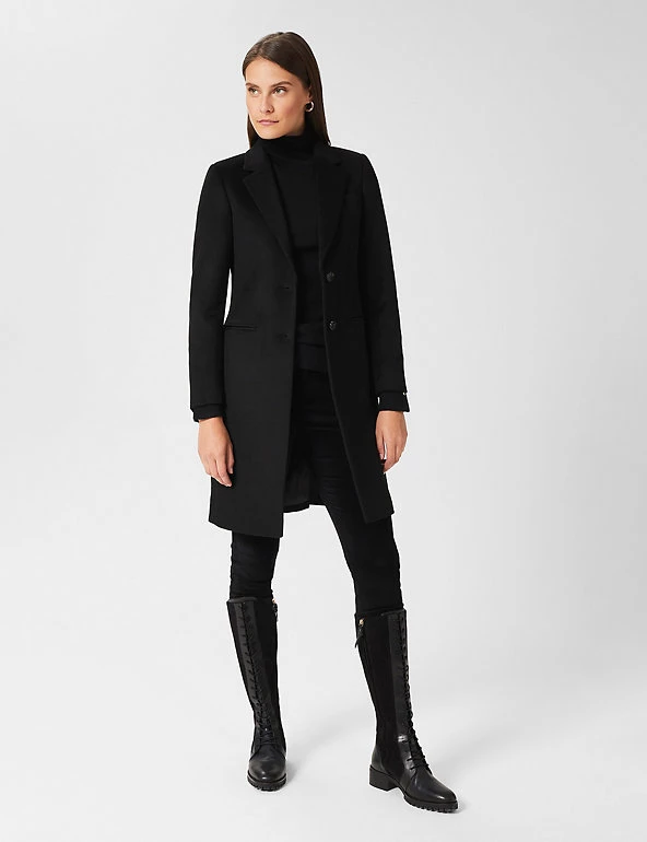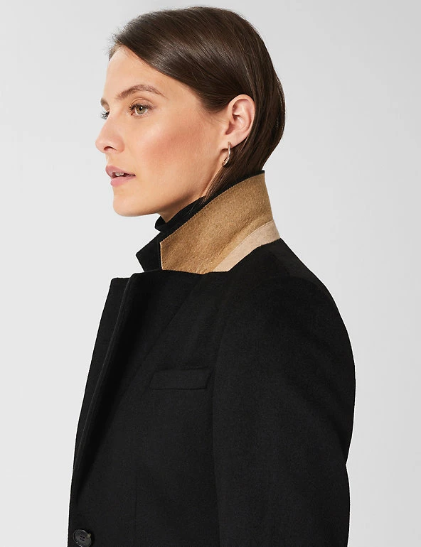 Wrap up for winter in this pure wool coat from Hobbs. Cut to a regular fit, this longline style has smart lapels and a single breasted fastening. Colour-matched piping and a contrast undercollar add premium touches. It’s finished with a back vent and a handy internal ticket pocket. Made with recycled polyester lining.