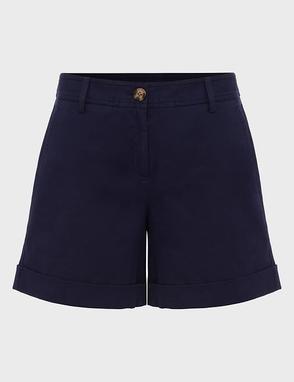 These classic cotton-rich chino shorts from Hobbs will quickly become your go-to for relaxed summer days. They feature a flattering mid-rise waist and fasten with a zip and button closure. Side and back buttoned pockets add practicality, while the turn-up hem gives them a laid-back finish.