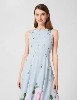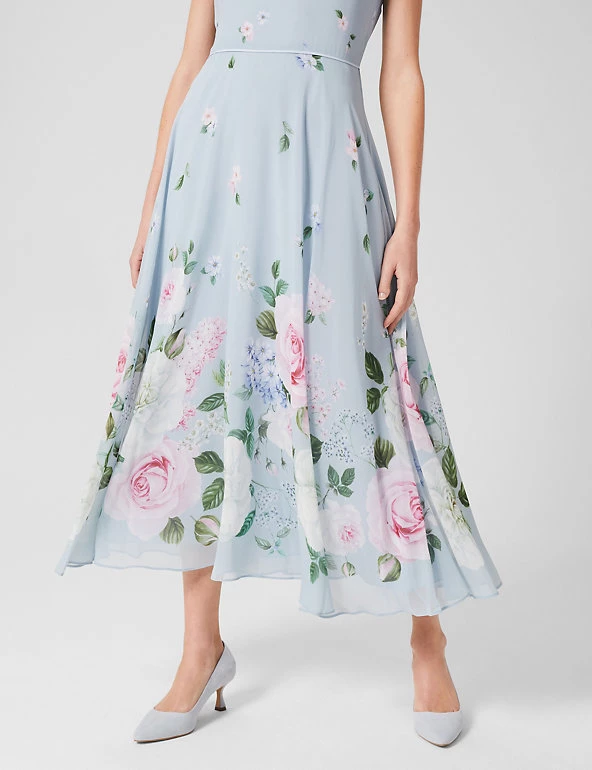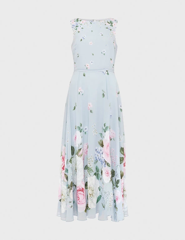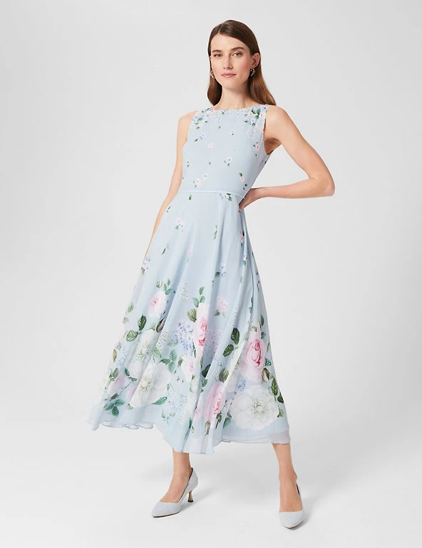 This Hobbs waisted dress is embellished with a striking floral print, giving it a romantic look that’s ideal for special occasions. It’s cut in a comfortable regular fit, in a sleeveless style with a feminine round neckline. The skirt finishes at an elegant midi length. This piece is fully lined for comfort. Made with recycled polyester.