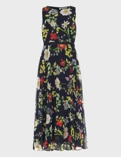 With its gorgeous floral print that was designed in-house, this sleeveless dress from Hobbs will make an impact at any occasion. It’s cut to a comfortable regular fit in an on-trend midi length, from georgette fabric that drapes beautifully. A textured ribbon cinches the waist, while the skirt swings as you walk. It fastens with a zip at the back.