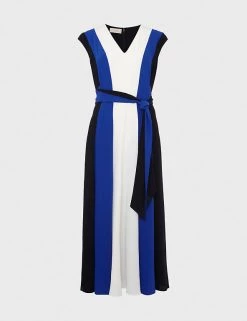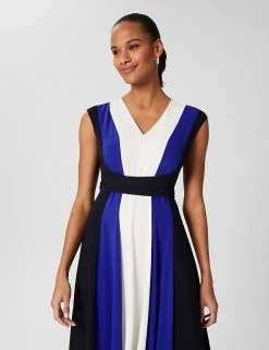 Make a striking entrance at your next event with this bold colour-block dress by Hobbs. Made in a regular fit, it features panels in contrasting colours that follow the flattering fit-and-flare silhouette. This occasion dress features an elegant v-neck and sleeveless bodice, with adjustable side ties that let you define your waist as desired. The drapey skirt falls to an on-trend midi length.