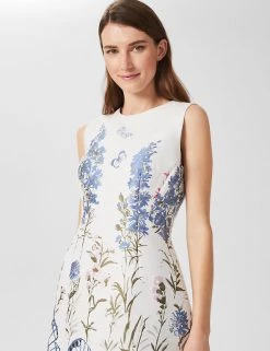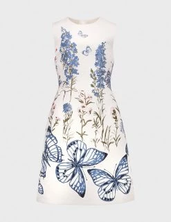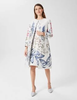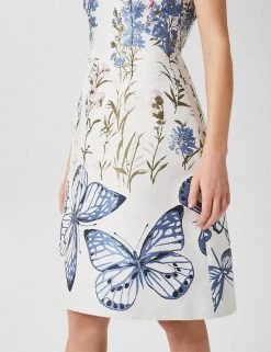 Create a statement look for your next special occasion with this cotton-blend dress from Hobbs. The regular-fitting shift design creates a streamlined silhouette and sits at an elegant knee length. Feminine florals and fluttering butterflies add a distinctive feel. Made with recycled polyester.