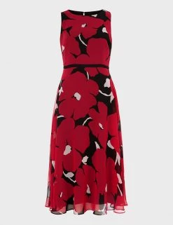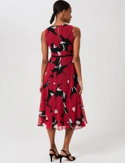 Show up to your next event in bold florals with this statement-making dress from Hobbs. This regular-fit design is crafted from delicate georgette fabric in a vibrant floral print that has been designed exclusively by Hobbs. A grosgrain ribbon highlights the waist and the skirt flares to an elegant midi length. This sleeveless dress fastens with a neat zip at the back.