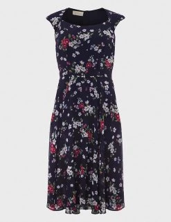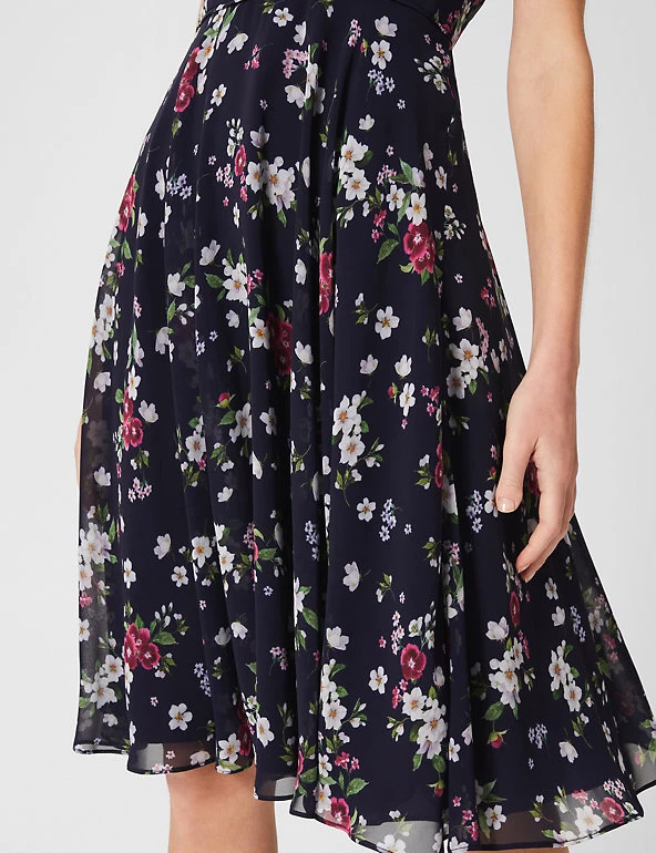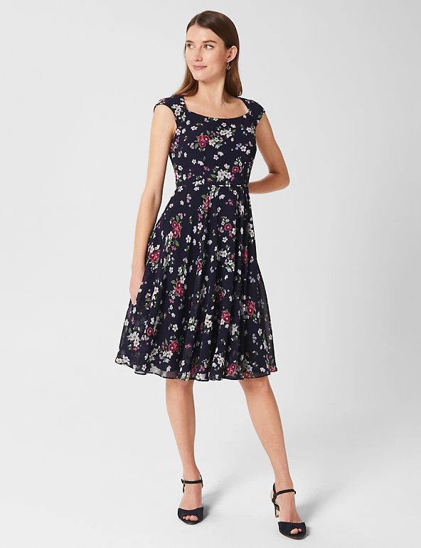 Look the part at summer events in this floral-print dress from Hobbs. It’s designed in a classic regular fit with a flattering swing silhouette that nips in your waist. This elegant piece features a floaty skirt that finishes at the knee. Short cap sleeves and a modern square neck add neat finishing touches. It fastens with a back zip.