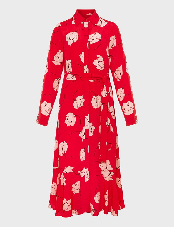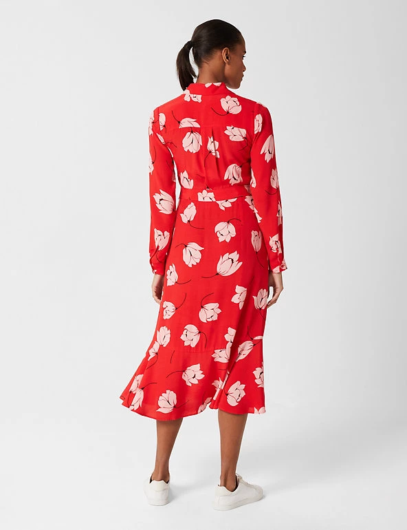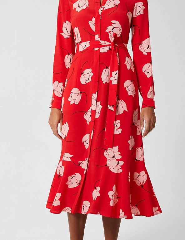 With its striking floral print, this Hobbs shirt dress ensures a standout look. It’s cut in a comfortable regular fit, with a collared neck and long cuffed sleeves for a smart finish. The neck-to-hem buttons are tucked behind a neat concealed placket and the hemline falls to an easy midi length. A tie belt highlights your waistline. Made with sustainably sourced viscose.