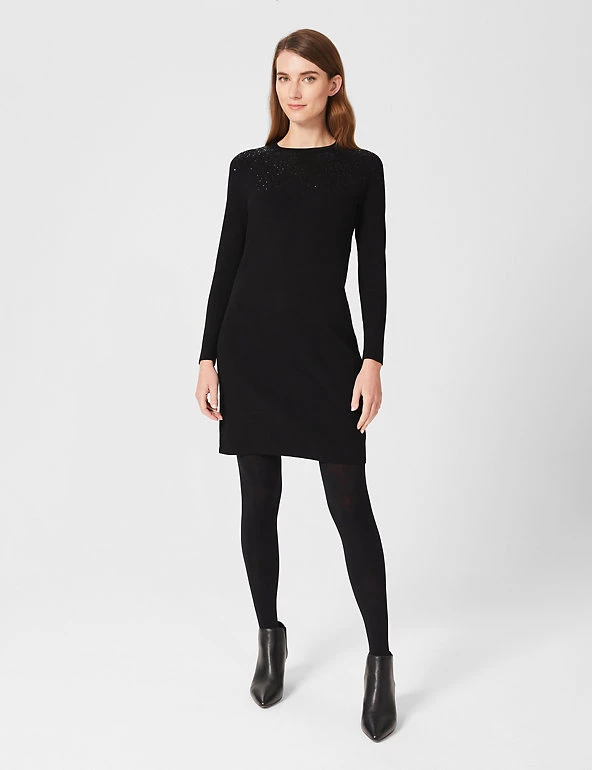 Giving you the best of both worlds, this Hobbs mini dress combines the comfort of a jumper with the sparkle of sequins. It’s cut in an easy regular fit and sits at a mini length making it perfect for parties. The dress is framed with a simple round neckline and long sleeves to keep you snug.