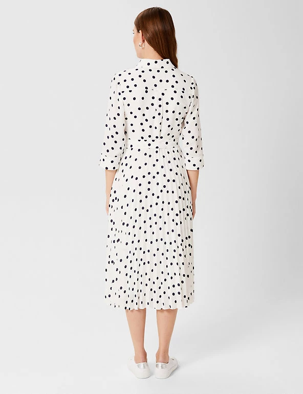 This versatile polka dot dress from Hobbs will quickly become a firm favourite in your wardrobe. It’s designed in a comfy regular fit with a flattering belted waist. The midi-length skirt is pleated for extra movement, while the buttoned placket and a collared neck provide smart touches. This stylish piece is finished with neat three-quarter sleeves and buttoned cuffs.