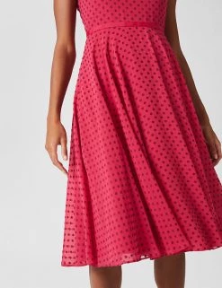 Add a timeless look to your occasionwear with this midi-length swing dress from Hobbs. The sleeveless design is cut to an easy regular fit and features a flattering halterneck. Subtle waistband detailing complements the classic polka dot print and adds extra shaping. Made with recycled polyester.