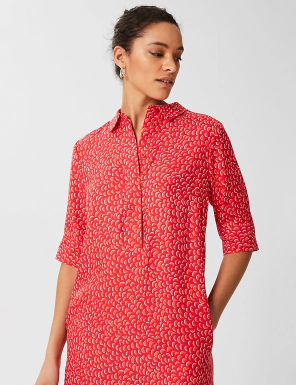 Get ready for the warmer weather with this versatile printed shirt dress from Hobbs. It’s designed in a comfy regular fit with three-quarter sleeves for a super flattering silhouette. This knee-length style is finished with a smart collared neck and a hidden buttoned placket.