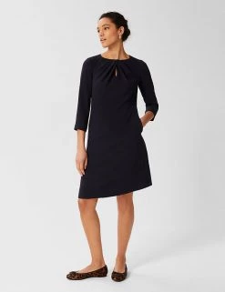 With its timeless A-line silhouette and subtle detailing, this Hobbs dress is all about understated elegance. It comes in a regular fit, with easy 3/4 sleeves, and falls to a practical knee length. Knot pleating and a keyhole feature at the round neckline give a flattering finish.