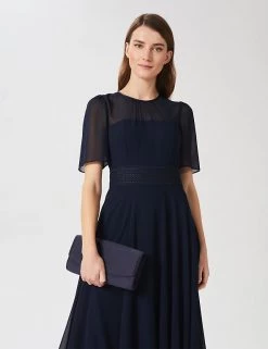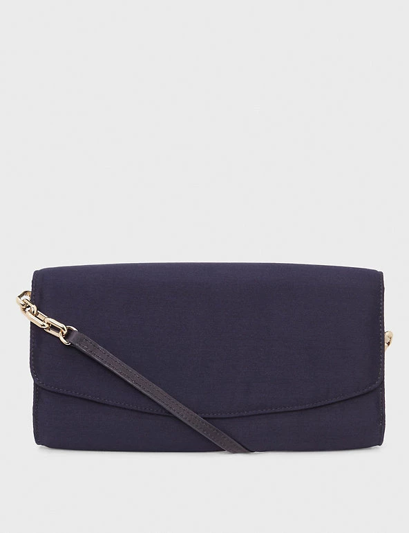 Add the finishing touch to occasion outfits with this satin clutch bag from Hobbs. This sleek style is made with silk for a premium feel. It has plenty of room for your event essentials, and has hidden magnetic fastenings to keep your belongings secure. There’s also a skinny strap to attach to the gold-tone hardware, in case you prefer to wear your bag on the shoulder.