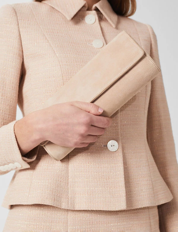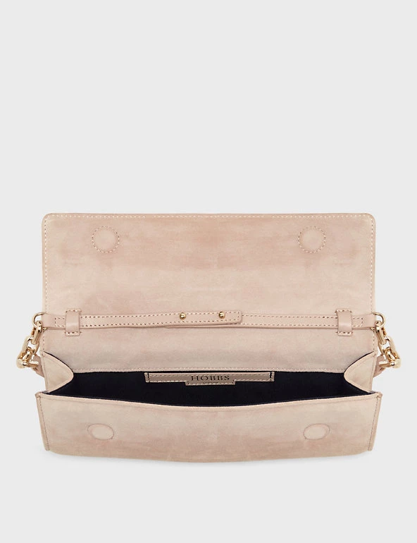 Add the final touch to wedding guest looks with this premium suede clutch bag from Hobbs. This sleek style has one main compartment with plenty of space for your event essentials. It features a detachable fabric and chain-link strap for two ways to wear and closes with two concealed magnetic fastenings.