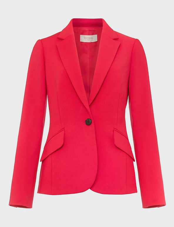 With its simple yet striking silhouette, this Hobbs single-breasted blazer adds instant style points to any outfit. It’s cut in a comfortable regular fit, with a contrast button fastening for statement detailing. Diagonal flap pockets at the waist provide useful storage, and the blazer is fully lined for comfort. Made with recycled polyester lining.