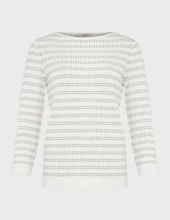 Perfect for dressing up or down, this crew neck jumper from Hobbs makes a versatile addition to your wardrobe. The regular fit piece features delicate embroidery to create a modern all-over striped pattern. A simple crew neck and contemporary three-quarter sleeves complete the look. Made with sustainably sourced viscose.
