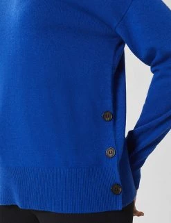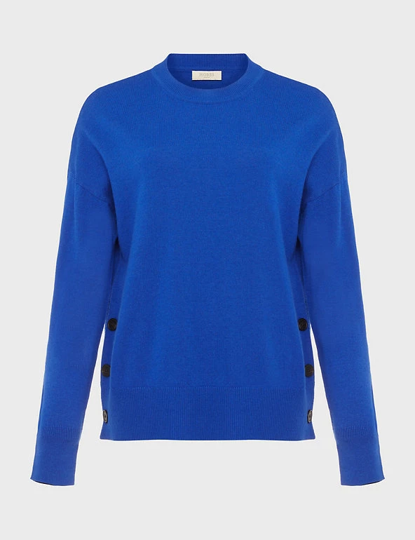 Crafted from a luxuriously soft merino wool blend with a hint cashmere, this Hobbs jumper takes comfort to the next level. This piece is knitted in a regular fit and has a crew neck for a classic look. Ribbed trims add extra cosy touches, while button detailing along the sides brings a modern finish.