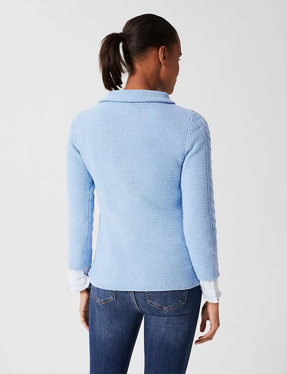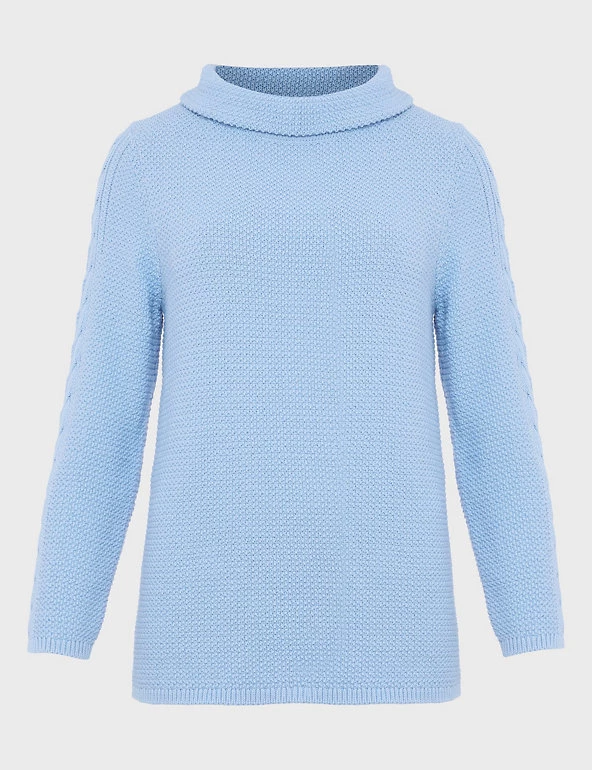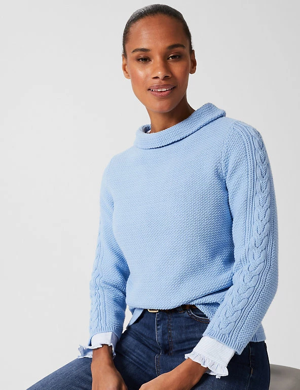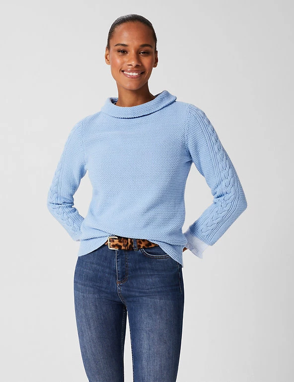Bring a touch of elegance to your knitwear collection with this pure cotton jumper from Hobbs. It has a comfortable regular fit, with a classic cable-knit design on the sleeves and a feminine cowl neckline. This brand is proud to invest in making cotton production more sustainable.