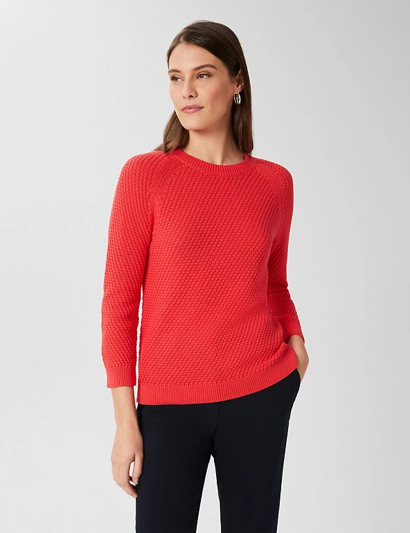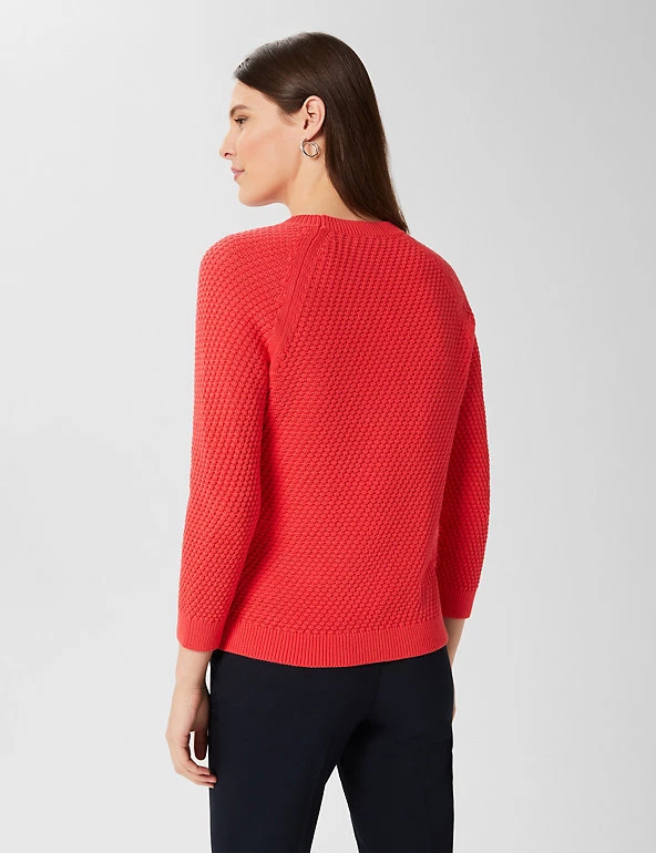 The yarn for this Hobbs jumper is spun from pure cotton for a soft and gentle handfeel. It’s knitted in a comfortable regular fit with an easy crew neckline. A textured stitch pattern adds extra interest, and ribbing at the cuffs and waistband helps keep in the warmth.