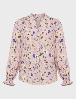 This Hobbs blouse has a gorgeously romantic feel with its soft floral print. It’s designed in an easy regular fit, with a feminine v-neckline and button-through fastenings. Gathers at the shoulders give extra draping. The long sleeves finish in delicate frilled cuffs, with shirring for a flexible wear. Made with sustainably sourced viscose.