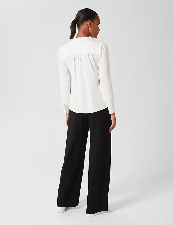 Go for an effortlessly chic look with this elegant blouse from Hobbs. It’s cut in a comfy regular fit with pleating at the collar, buttoned cuffs and shoulders for extra shaping. This understated design is finished with a hidden buttoned placket and a classic round neck. Made with recycled polyester.