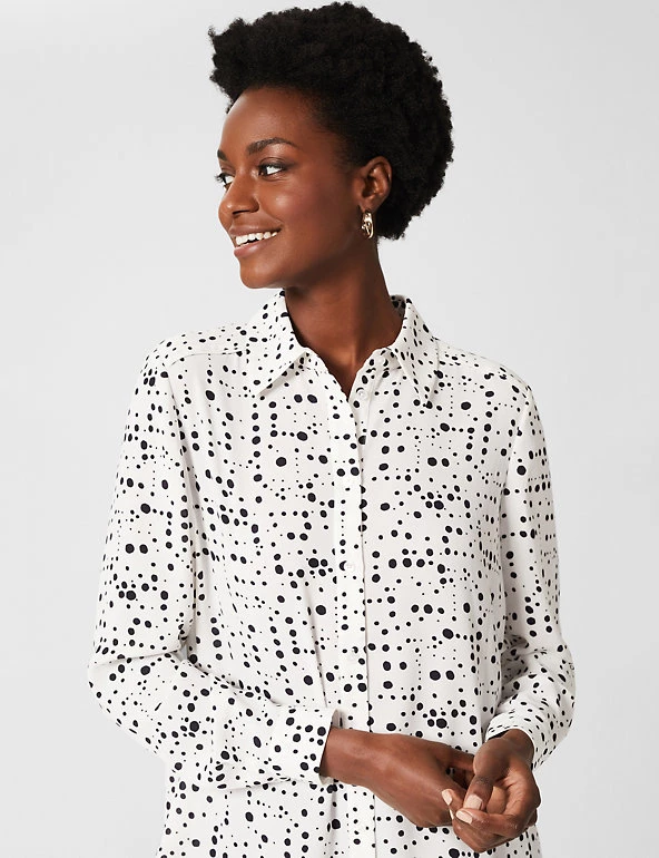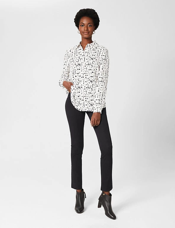 This smart shirt from Hobbs will be your go-to work option. Cut to an easy regular fit, it’s the perfect blend of comfort and style. You’ll find a classic collar and button fastenings, plus a flattering curved hem that can be worn loose or tucked in for a more defined silhouette. Made with recycled polyester.