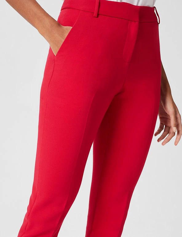 These cigarette trousers from Hobbs are set to be your new go-to favourites. They’re cut in an on-trend tapered shape, with a flattering mid-rise waistline. Added stretch ensures a comfortable wear and the hook bar and zip fastening gives a smooth, neat silhouette. They feature handy pockets at the hips. Made with recycled polyester.
