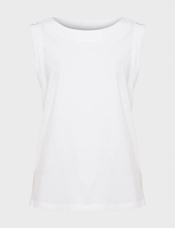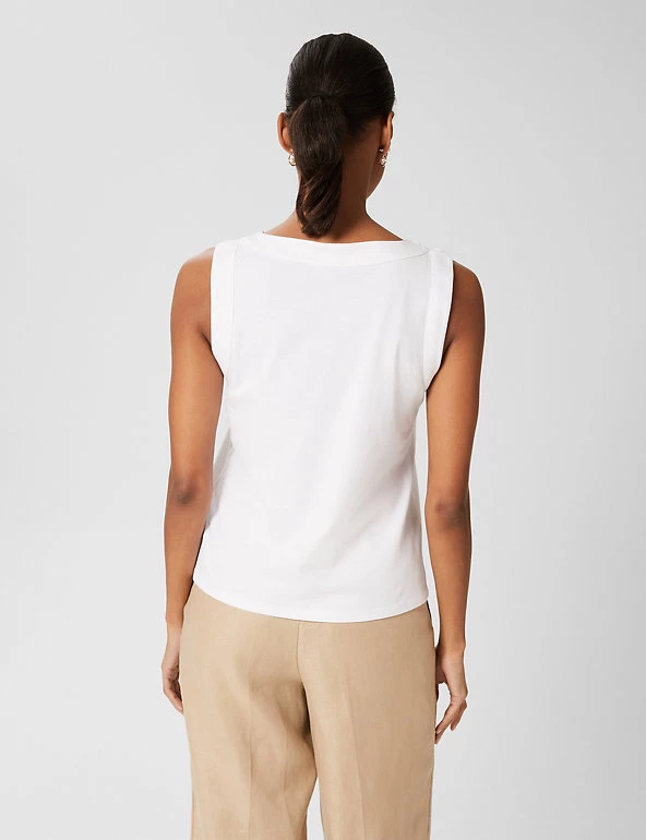 Add a refined piece to your workwear with this pure cotton vest top from Hobbs. Made in a regular fit, the sleeveless essential features a simple crew neck. Button detailing along the shoulders adds a subtle and contemporary finishing touch. This brand is proud to invest in making cotton production more sustainable.