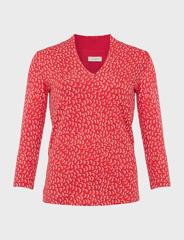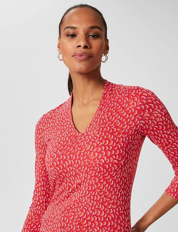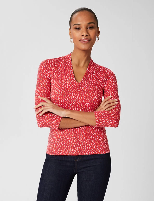 Stand out from the weekend crowd in this vibrant printed top by Hobbs. The regular-fit piece sports a flattering v-neck and contemporary three-quarter sleeves for an on-trend look. An all-over pattern gives it a playful twist. Made with sustainably sourced viscose.