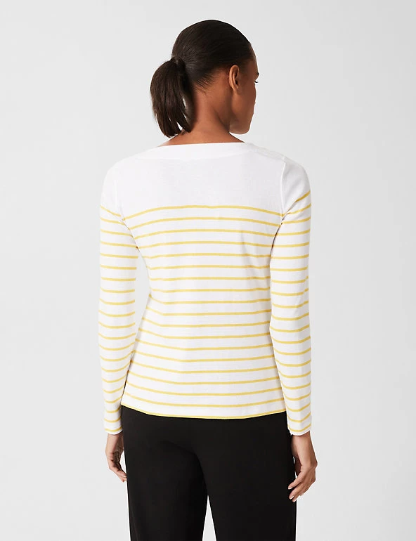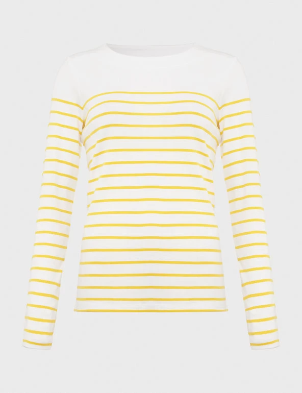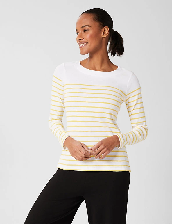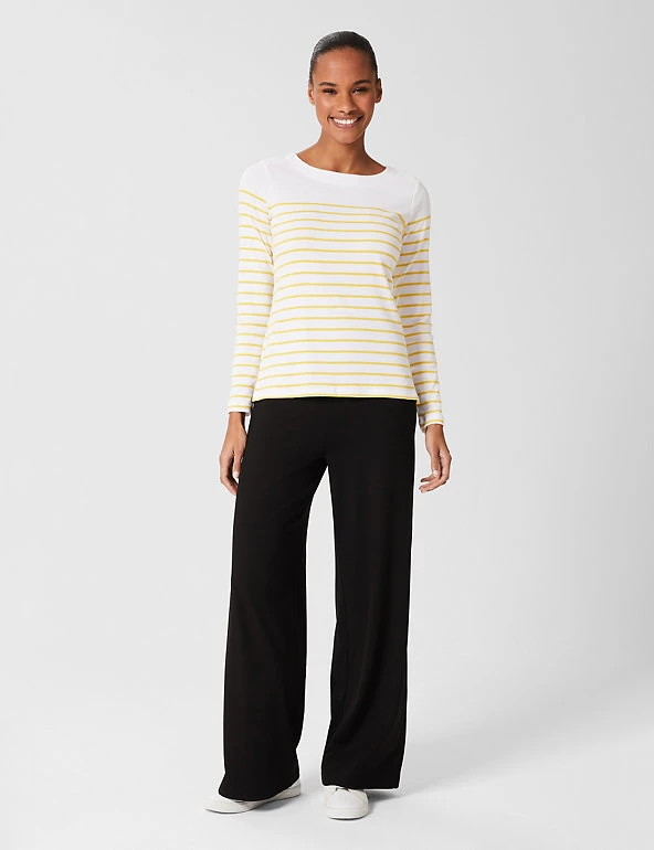 A bright Breton stripe adds a statement touch to this pure cotton top from Hobbs. It’s cut in a regular fit from cosy brushed jersey with heat-locking long sleeves and a crew neck for extra warmth. The straight hem features neat side splits for easy movement and a flattering shape.