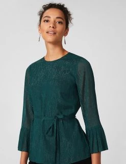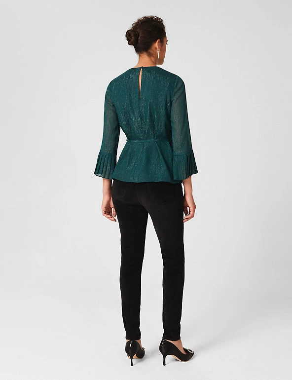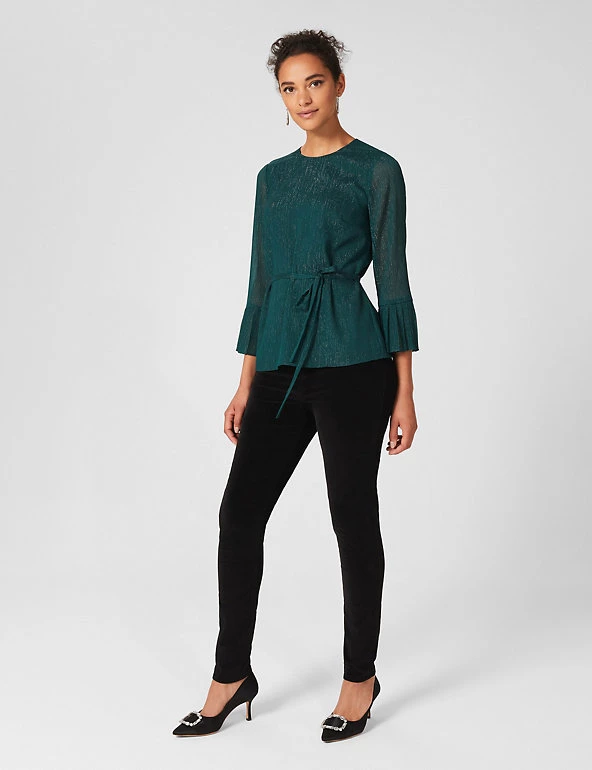 Elevate your outfit with this gorgeously detailed Hobbs top. It’s cut in a flattering regular fit with a feminine waist tie to emphasise your figure. The three-quarter sleeves are finished with deep pleated cuffs.