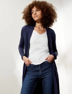 Update your collection of timeless staples with this elegant cardigan from Jaeger. This regular-fit style is cut to a flattering longer length from beautiful jersey modal fabric for a super-soft feel. It’s made with added stretch for comfort. Wear this cardigan with jeans and trainers for a put-together look.