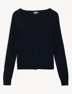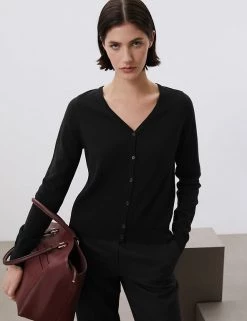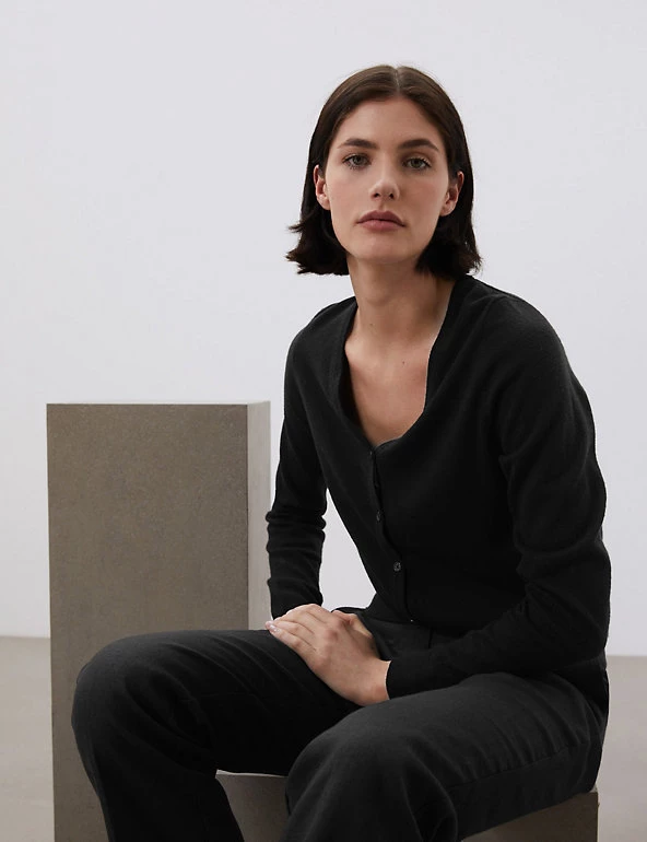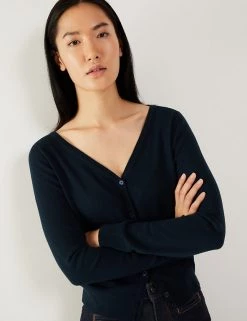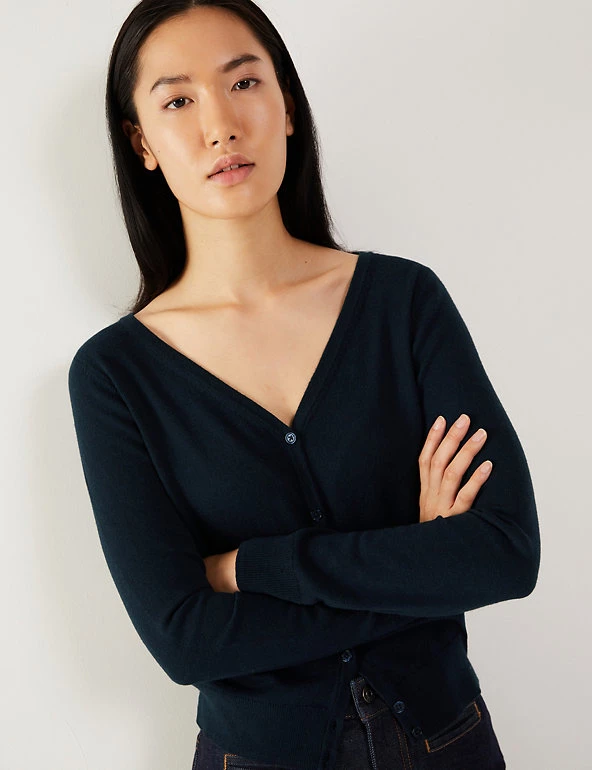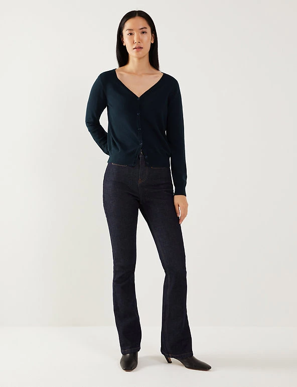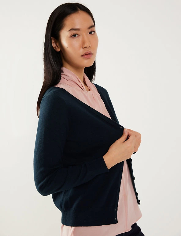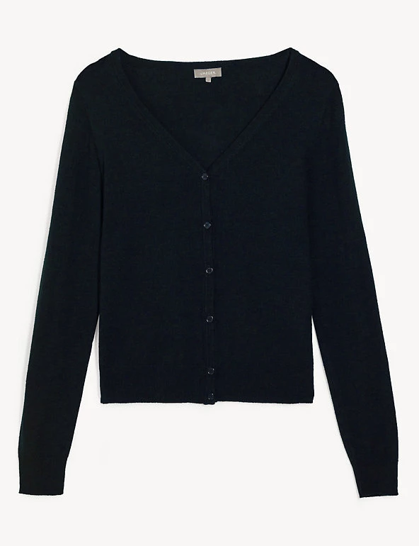 This luxurious cotton-blend cardigan from Jaeger is made with touch of cashmere, for lightweight coverage on cooler days. Cut in a regular fit, it features a v-neckline, making it perfect for layering over everything from t-shirts to dresses. Ribbed trims create a snug feel, while same-colour buttons add a refined finishing touch.