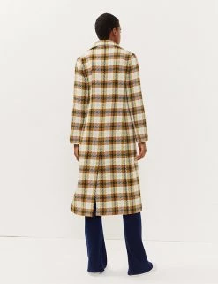 This statement coat from Jaeger is made with wool for a touch of winter luxe. The regular fit is tailored for a sharp silhouette, with smart lapels and contrast button fastenings. An all-over check print adds a stand-out finish to this single-breasted style.