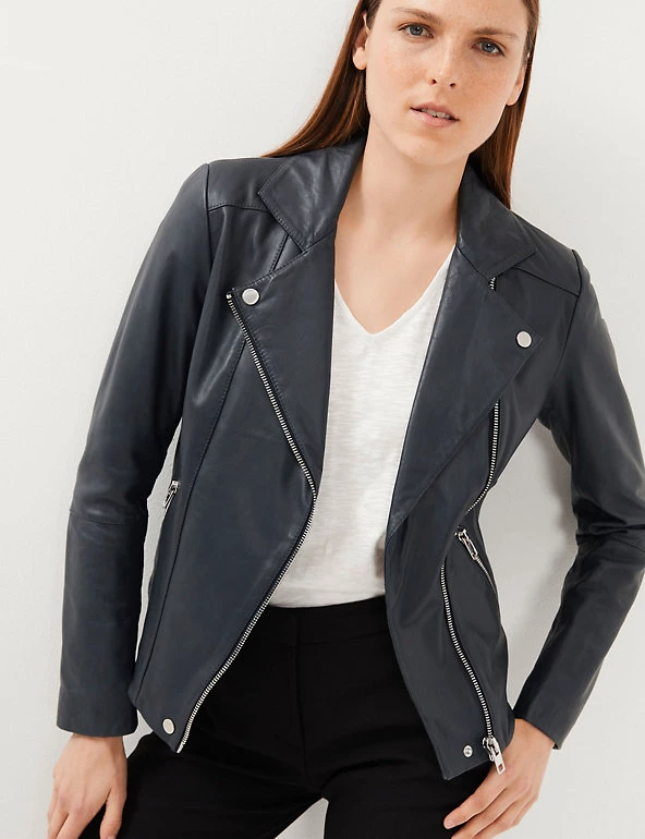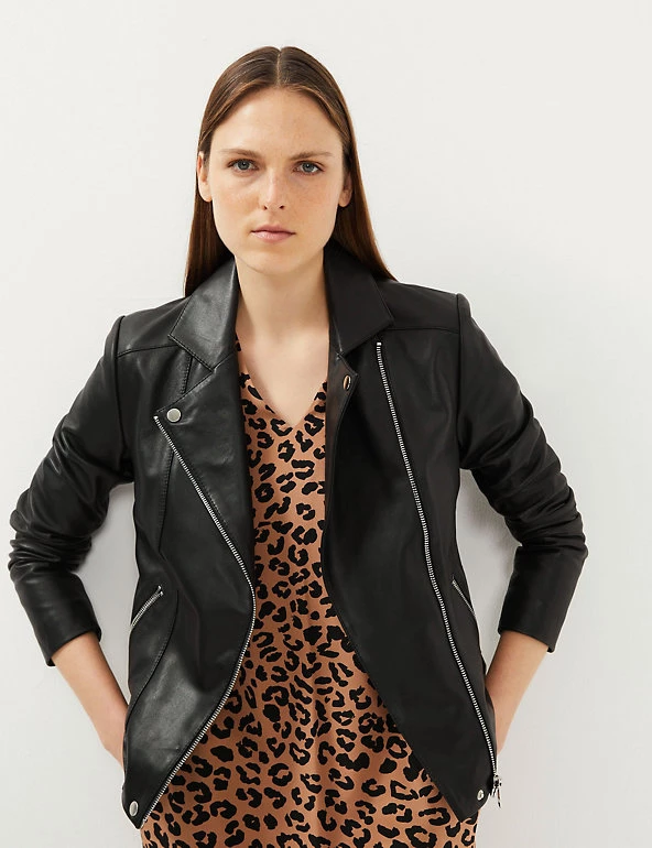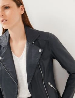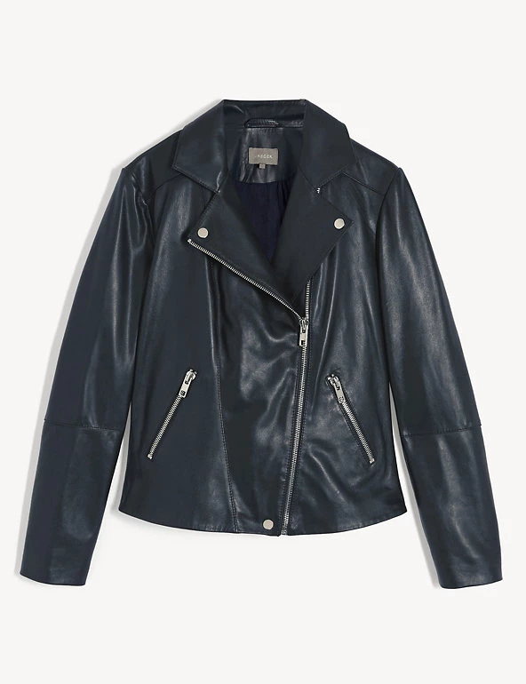 Add a rock-chic edge to any outfit with this premium biker jacket from Jaeger. It’s cut in a comfy regular fit with timeless styling including a chunky zip fastening and a collared neck. The soft leather is enhanced with silver-tone hardware, while secure pockets at the side add practicality.