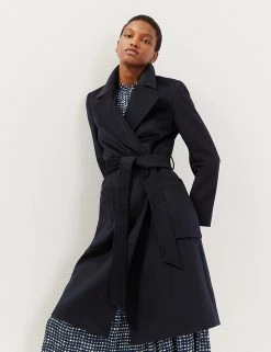 Product Style: Wrap coat, Product Length: Longline, Fit: Regular fit, Fastening: Tie fastening, Lined, Neck to hem length for a size 12: 107cm