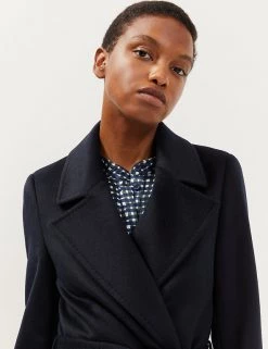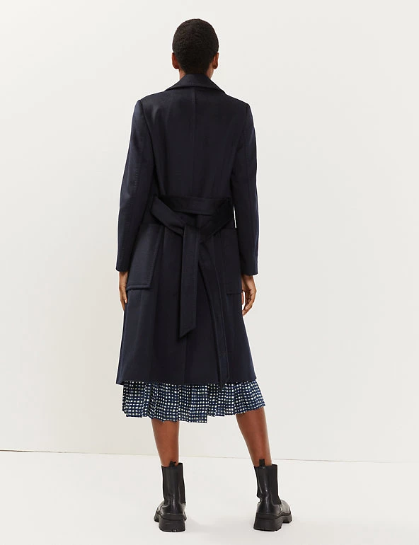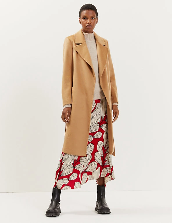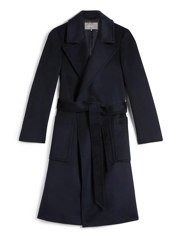 Embrace luxury layers with this pure wool coat from Jaeger. It’s cut to a regular fit, with smart lapels and a flattering wrap feature. The matching fabric belt can be used to cinch in the waist, or left open for throw-on-and-go appeal. This longline style is complete with two practical pockets and a Jaeger jacquard lining for a bespoke feel.