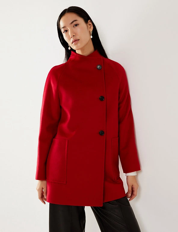Sleek and understated, this stylish pure wool coat from Jaeger instantly elevates your winter wardrobe. It’s cut to a regular fit from beautiful, soft fabric and has a jacquard Jaeger lining for comfort. The funnel neckline removes the need for a scarf and the statement pockets are handy for essentials like your keys, wallet and phone. This coat has a classic button fastening.