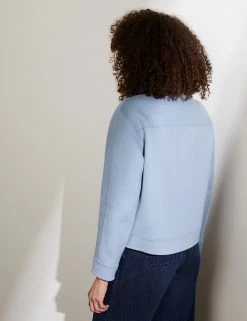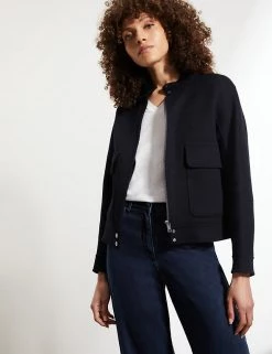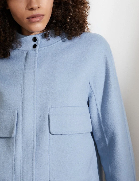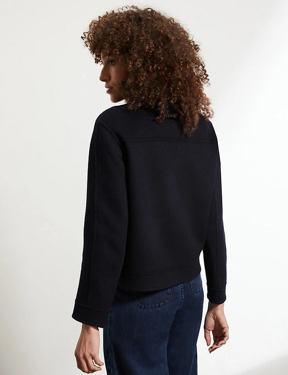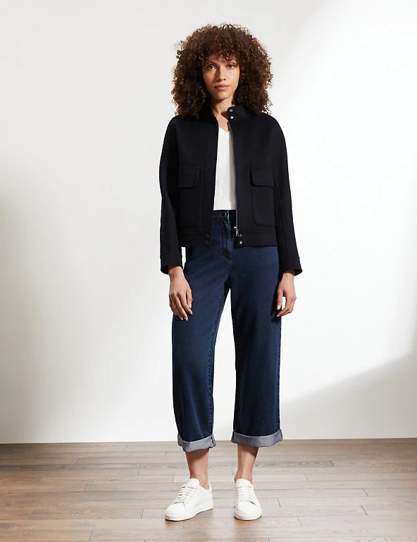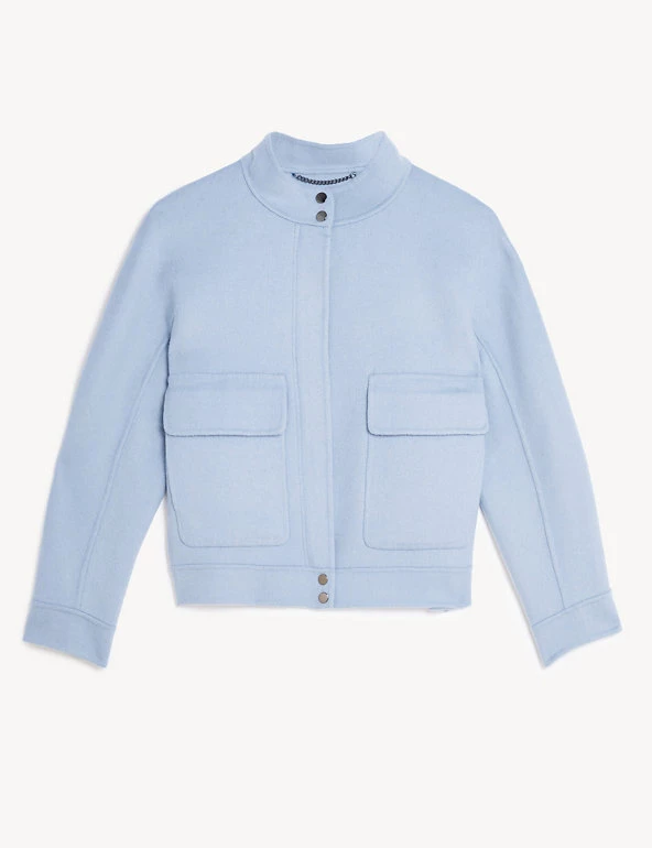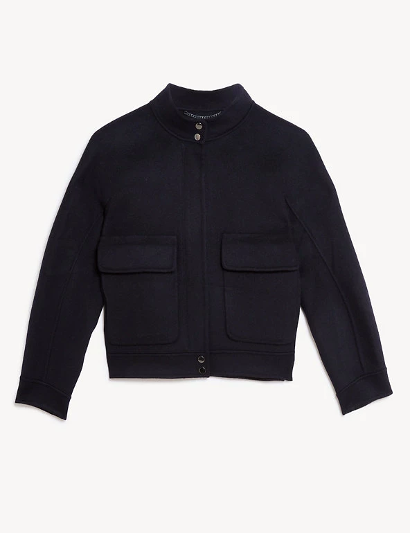This staple biker jacket from Jaeger is crafted from luxurious pure wool that’s soft to the touch. Designed to flatter, it’s cut to an effortless regular fit, with high neck detailing and long sleeves. Two large patch pockets and popper buttons give this style a timeless, utility-inspired finish that works with everything from jeans to tailoring.