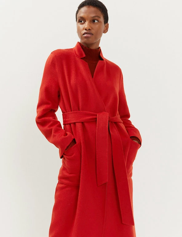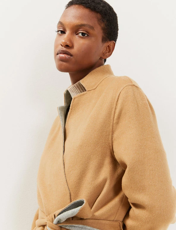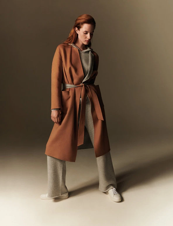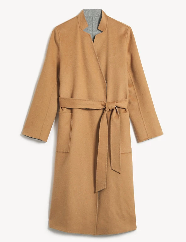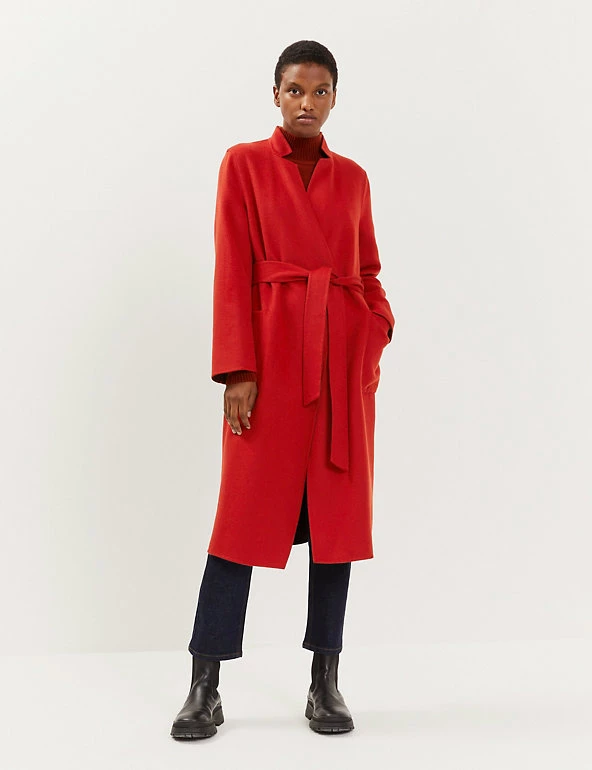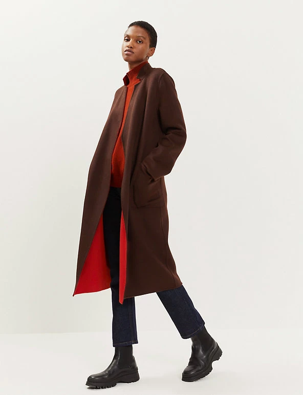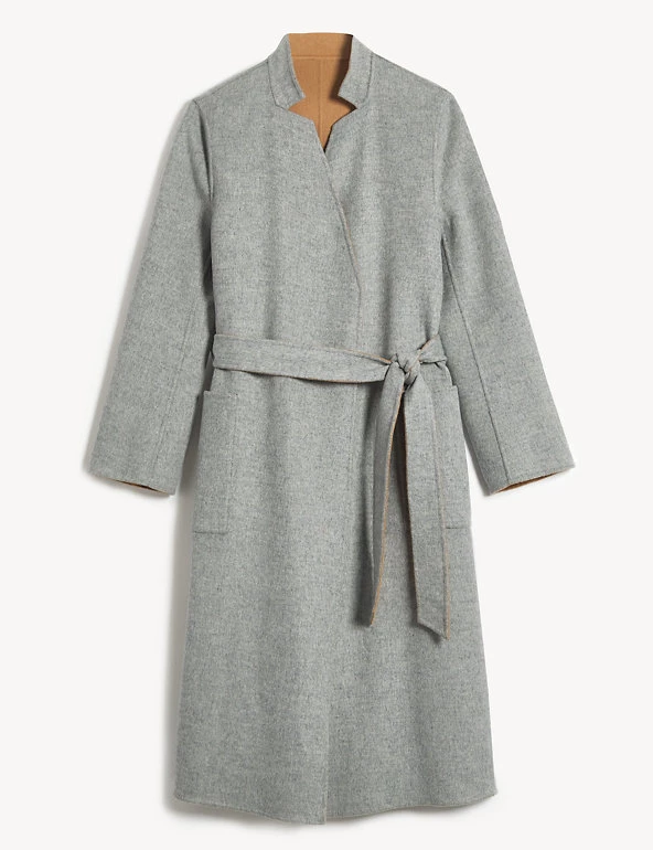 This pure wool wrap coat from Jaeger is fully reversible for a choice of two distinct looks. It’s cut in an effortless regular fit, with smart lapels and a tie fastening to enhance the waist. This longline design is finished with two handy patch pockets on either side.