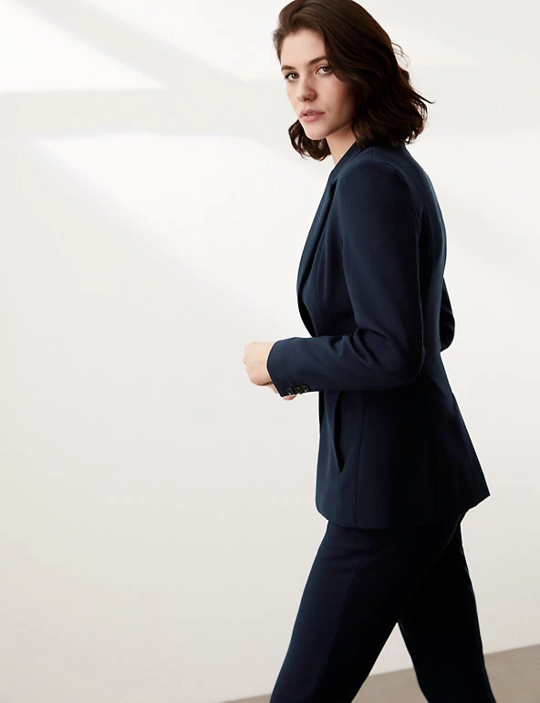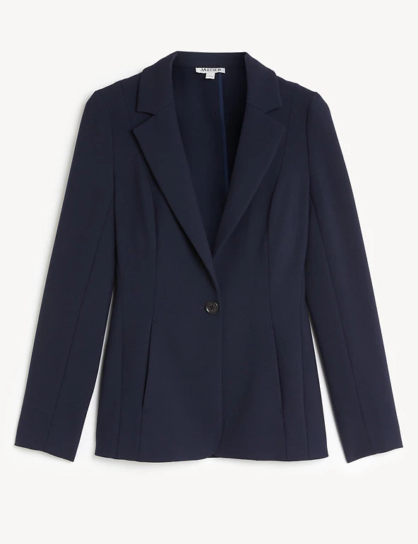 This luxury single-breasted blazer from Jaeger is the perfect addition to your sophisticated formal collection. It’s cut in a comfortable regular fit, with a single button fastening. The blazer comes with added stretch for optimal movement.