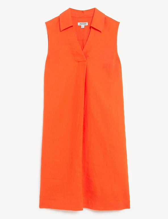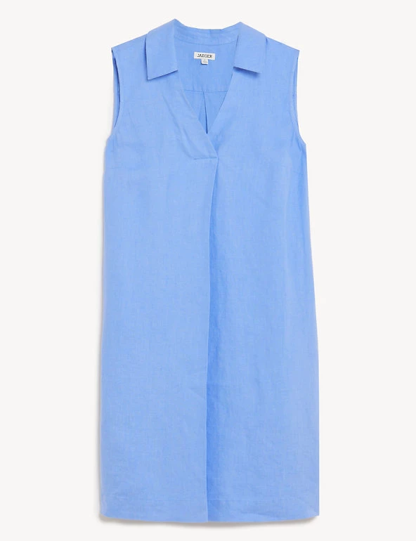 This timeless pure linen shift dress from Jaeger is a summer classic. Crafted from breathable fabric, this comfortable style is cut to a regular fit for effortless wear. It has a collared v-neck for a smart touch, plus a cool sleeveless shape. Dress it up with heeled sandals or pair with relaxed trainers for a casual look.