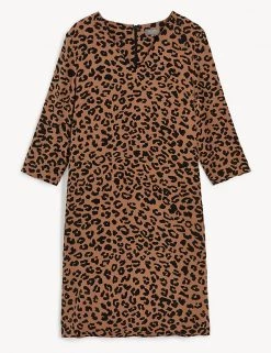 An exclusive animal print and luxurious pure silk fabric elevate this effortlessly chic dress from Jaeger. Created in a timeless shift silhouette to a regular fit, the dress glides on over the body, falling to just above the knee. A V-neckline and 3/4-length sleeves bring a touch of understated elegance. It’s made from washable silk, so you can simply pop it in the washing machine.