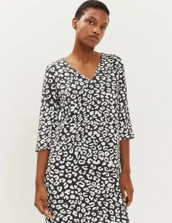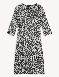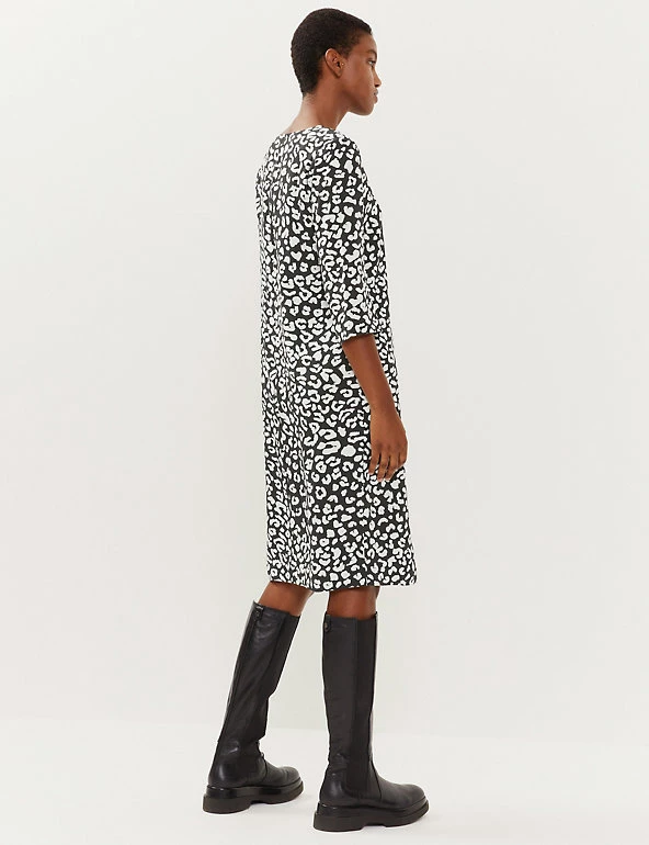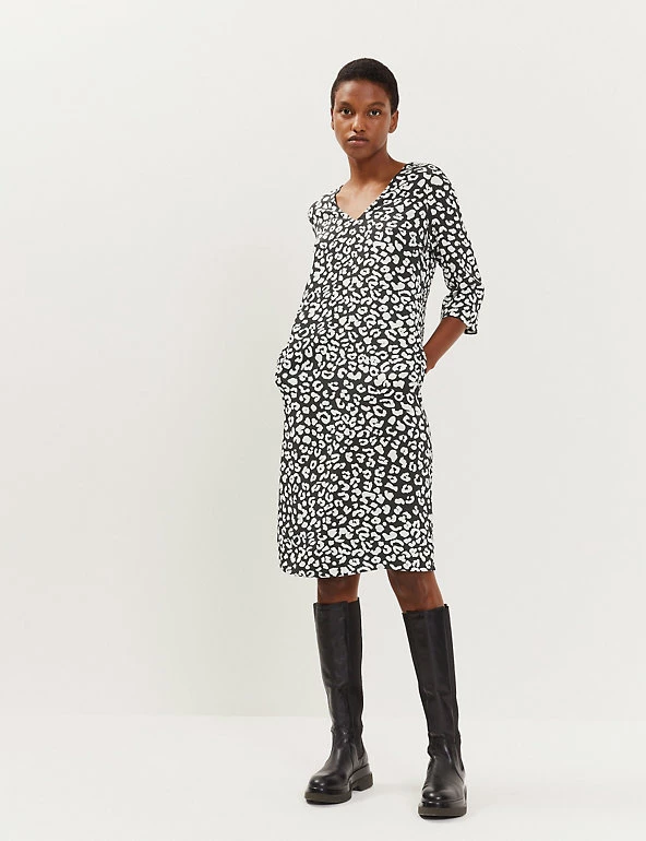 Add a touch of luxe to your wardrobe with this pure silk shift dress from Jaeger. It’s cut in an effortless regular fit, with a flattering v-neck and 3/4 length sleeves. This versatile knee-length design is lined for comfort and features an all-over animal print that’s unique to Jaeger. It fastens with a centre back zip.
